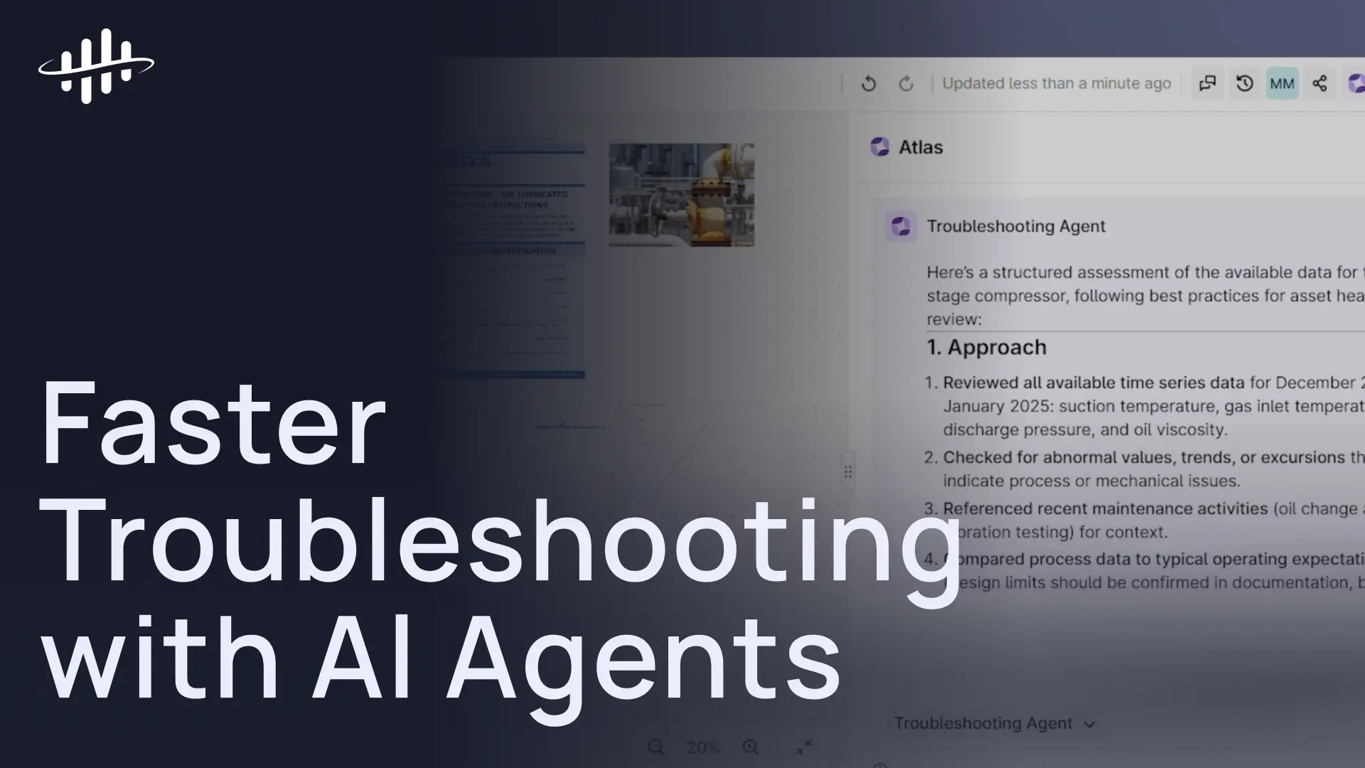 Discover how AI agents can help you troubleshoot equipment issues in minutes, not hours, so that you can quickly understand root cause and take action.