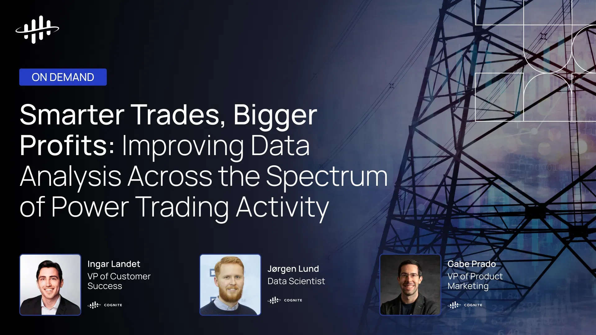 Join our power trading subject-matter experts to learn how Cognite enables analysts and traders to work iteratively in a data science process across a range of analytical topics within the trading domain.
