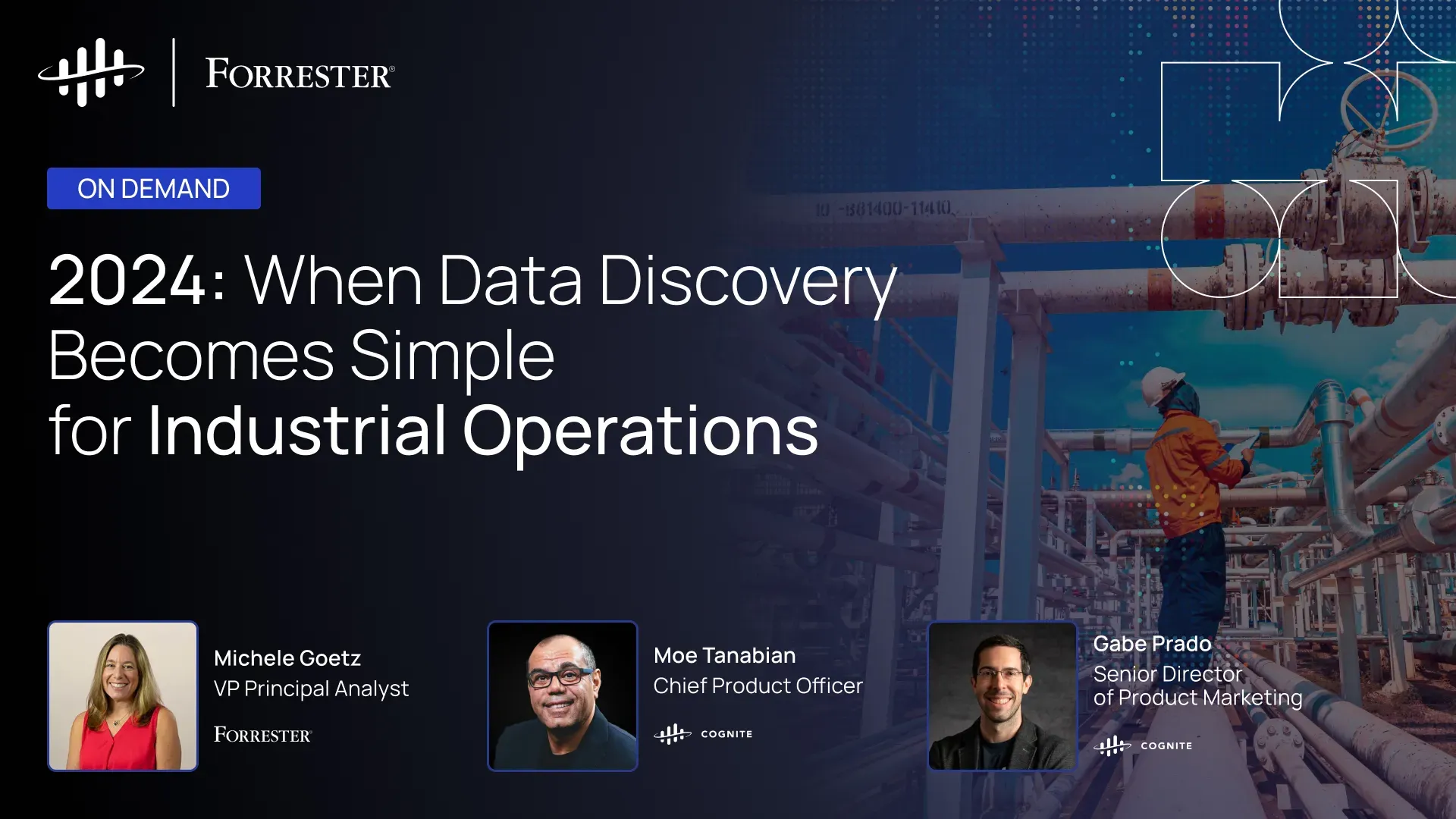 In this webinar, we focused on data discovery, data ops, the integration of generative AI in industrial operations, and the significance of knowledge graphs in enhancing data reliability and reducing computational costs. The discussion includes insights from experts Michele Goetz (Forrester) and Moe Tanabian (Cognite), who delve into the complexities of managing and interpreting industrial data, the challenges of ensuring data quality, and the strategic use of generative AI and knowledge graphs to address these challenges effectively.
