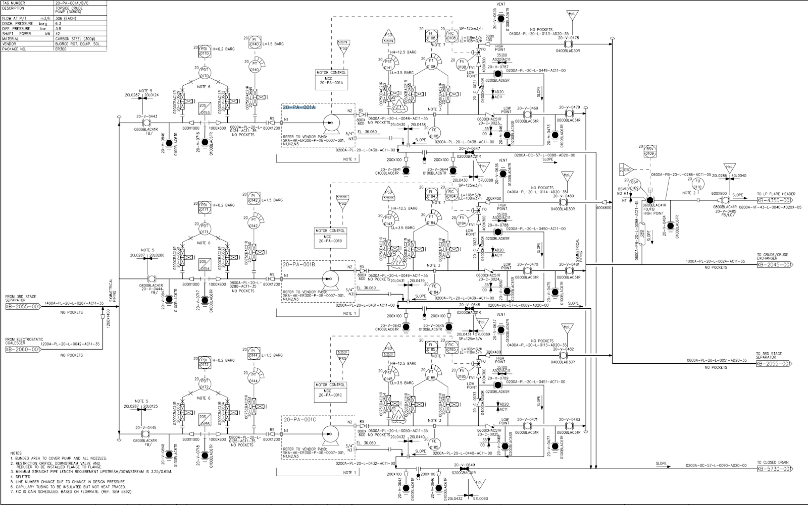 2つ目の課題は、一部のデータはPDF形式や紙媒体などコンピュータが処理しにくい形で保管されているということです。具体例として、P&IDまたは配管計装図は、配管プロセスと他の機器や計測器との相互作用を示すダイアグラムであり、通常PDF形式で保存されています。